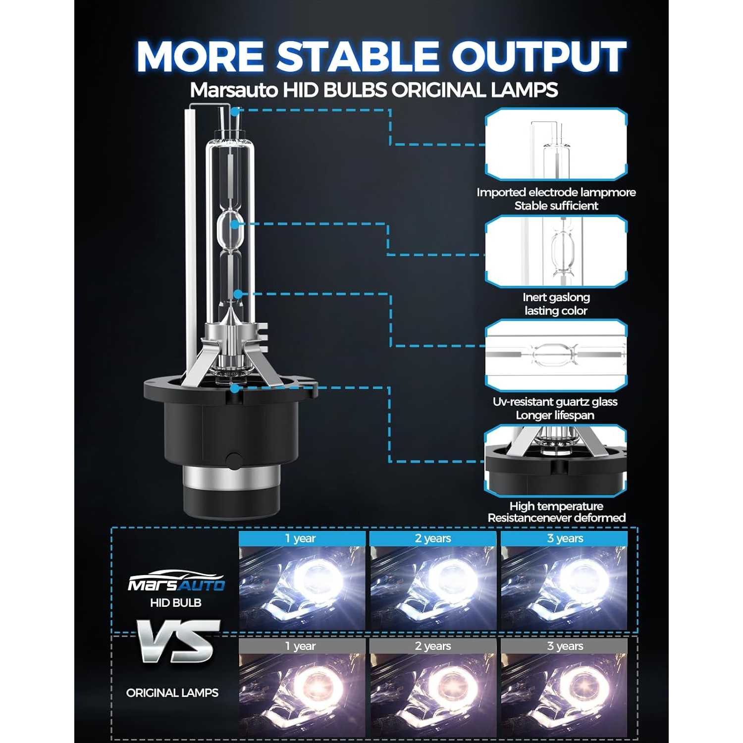 - 350% Brightness: filled with high-purity xenon gas, D2S xenon bulbs are 3.5x brighter than halogen bulbs and 2x brighter than standard HID lights. Built-in high voltage starter, braking response time as fast as 3s to start.