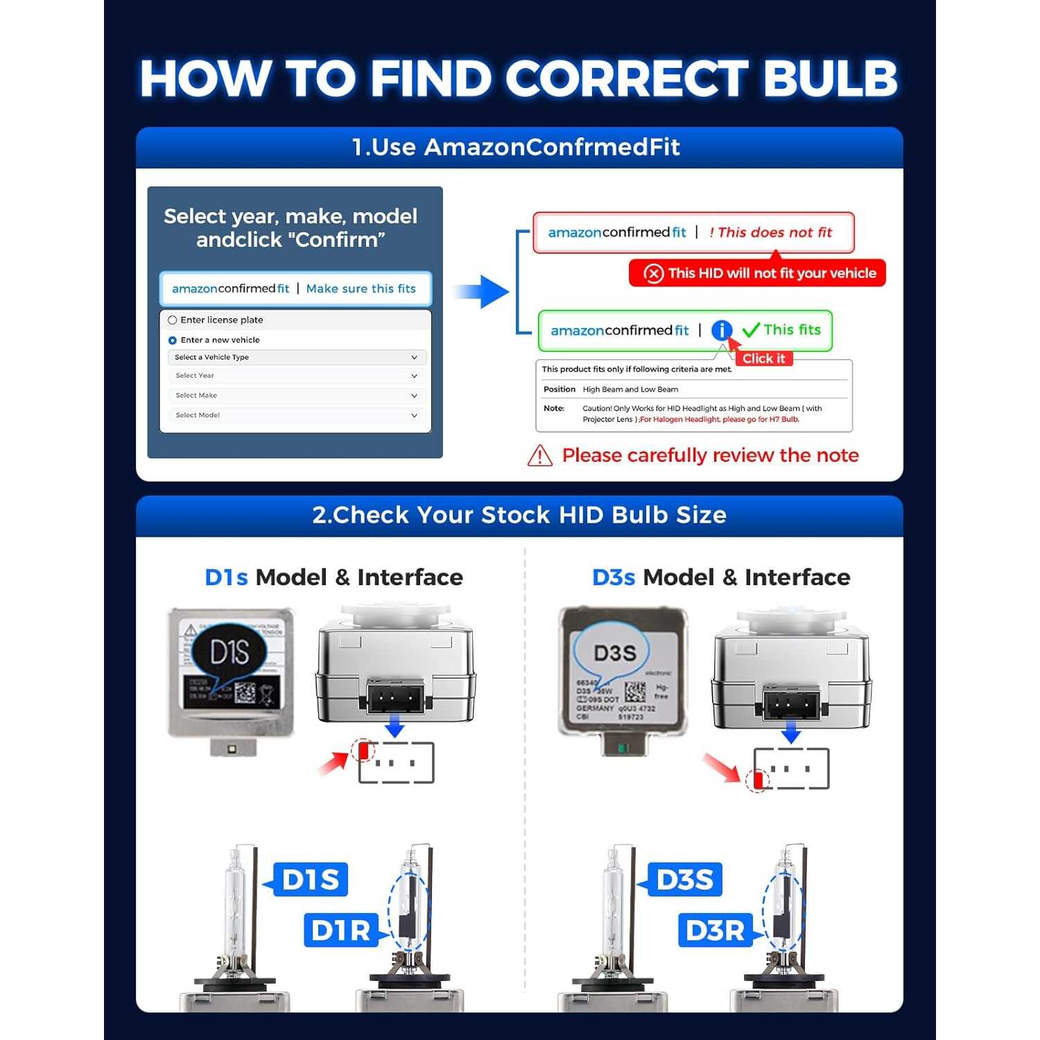 - 3500hrs Longevity: D2S hid bulbs ensure the last 3500hrs lifespan, reducing your bulb replacement frequency. IP67 waterproof design and high-temperature resistance metal base reduce the fog and vaporization damage caused during driving.