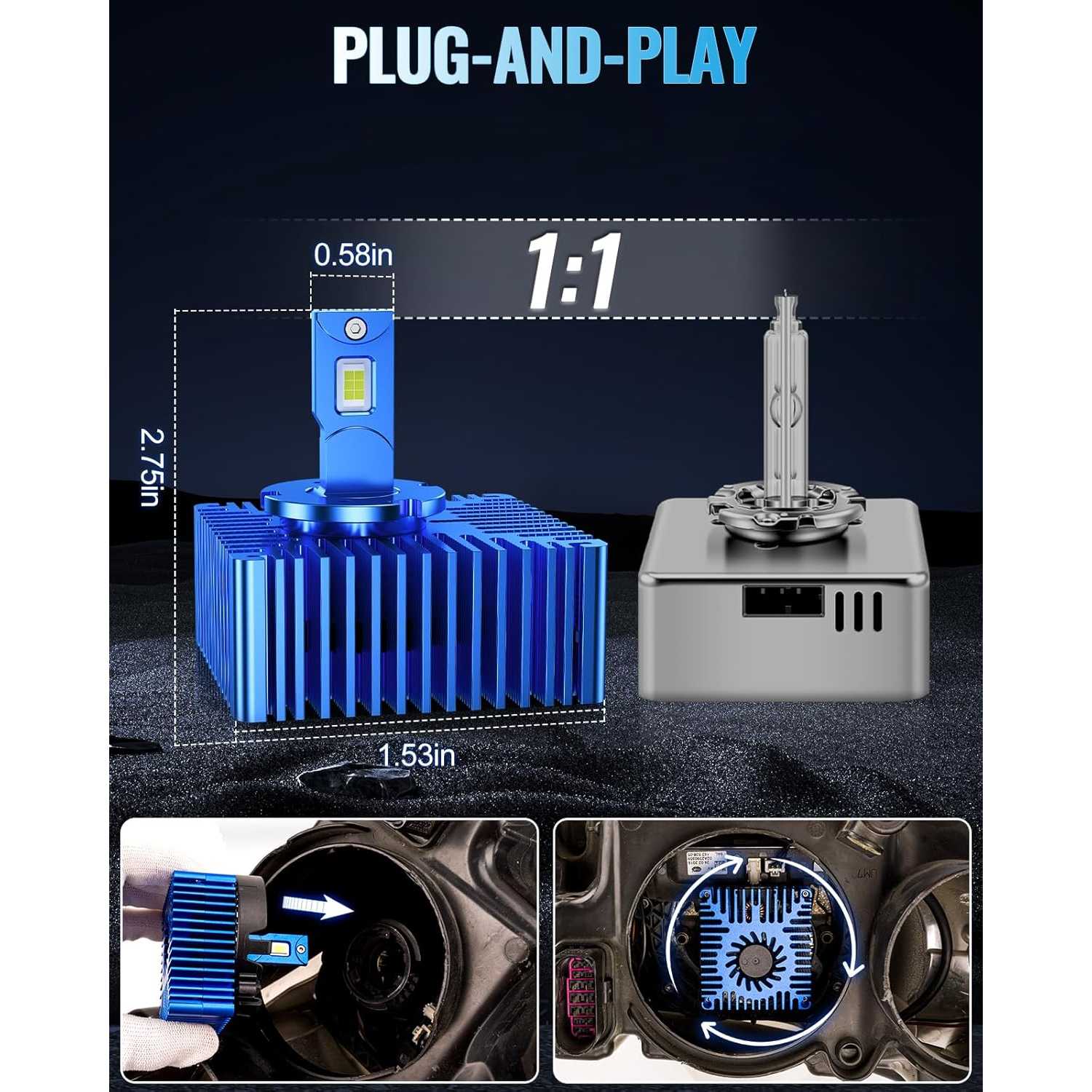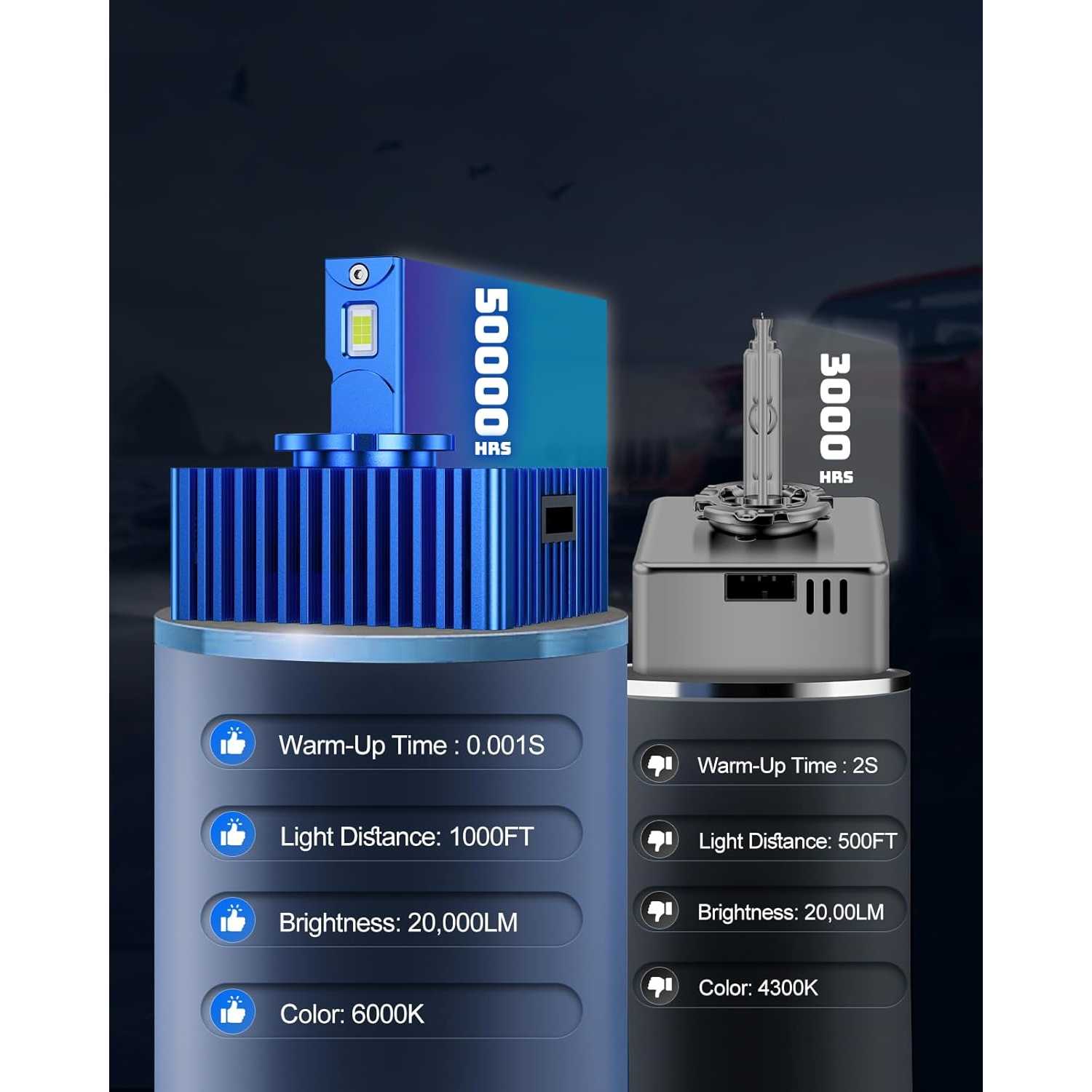 - Better Night Vision: Each Marsauto D5S bulb is equipped with 30 newly developed 30 L-E-D lamp beads, each group of luminous flux up to 24000LM, color temperature of 6000K, 6X brighter than the original HID bulb, allowing you to enjoy a better night driving vision and foresee road hazards in advance.