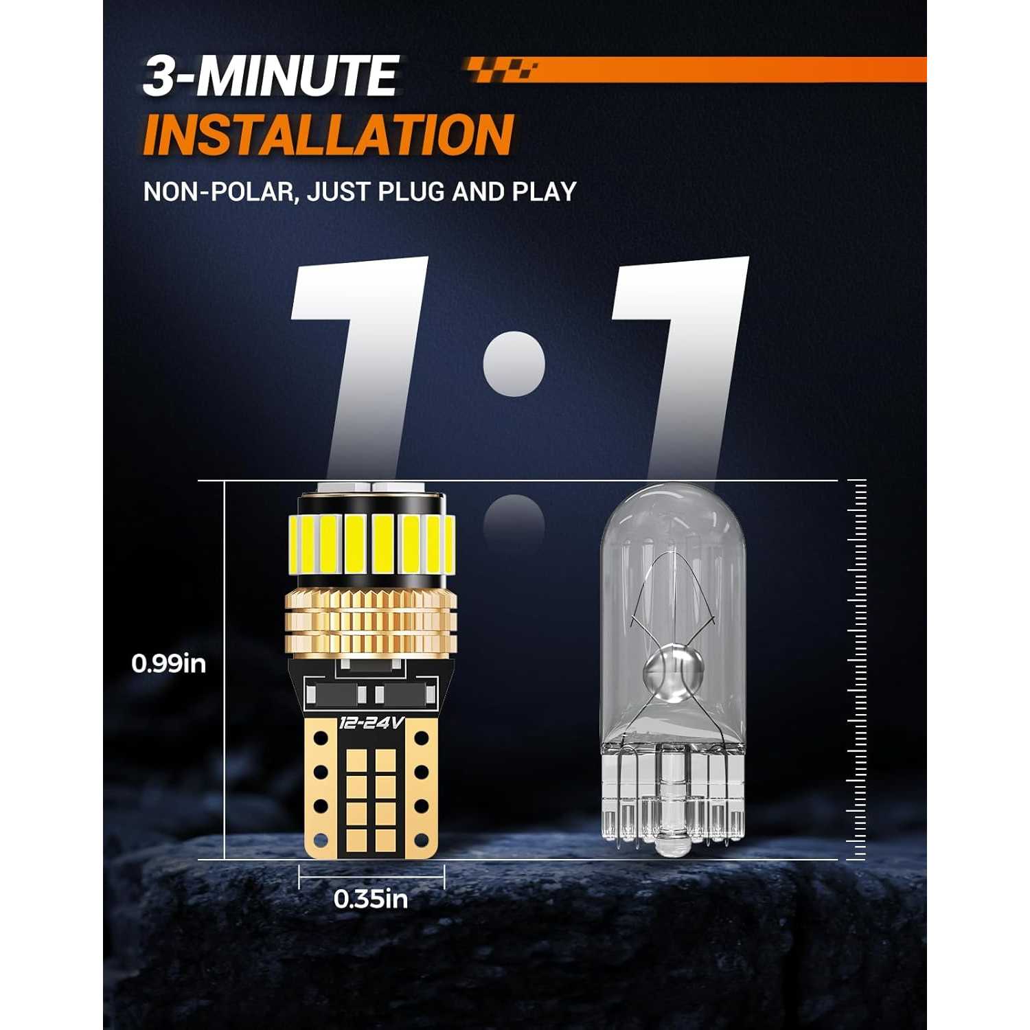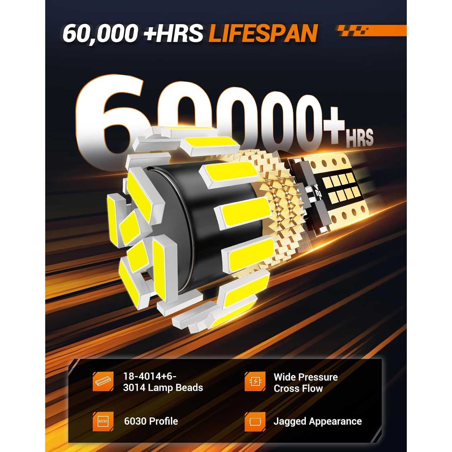 - (60,000 Hours Lifespan)The 6030 aviation aluminum body and (18-4014+6-3014) ceramic chips for better thermal conductivity and heat dissipation provide our 194 led bulbs license plate bulbs with a 60000 hours lifespan, reducing the need for frequent replacement.