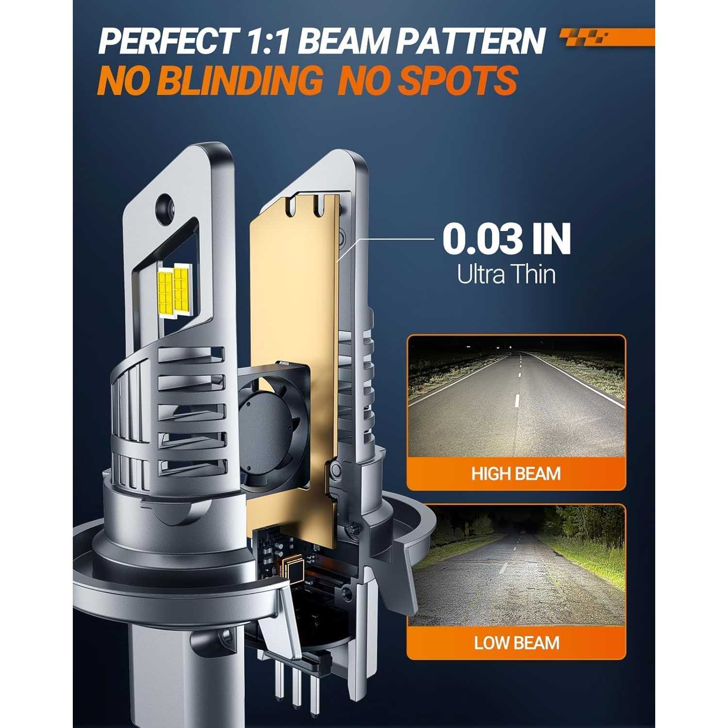 - Pefect 1:1 Lighting: The h13 h10 led bulb combo provide 0.03-inch ultra-thin copper substrate addresses issues like flickering and dimming. The focused lighting minimizes disturbance to oncoming traffic, enhancing safety on the road