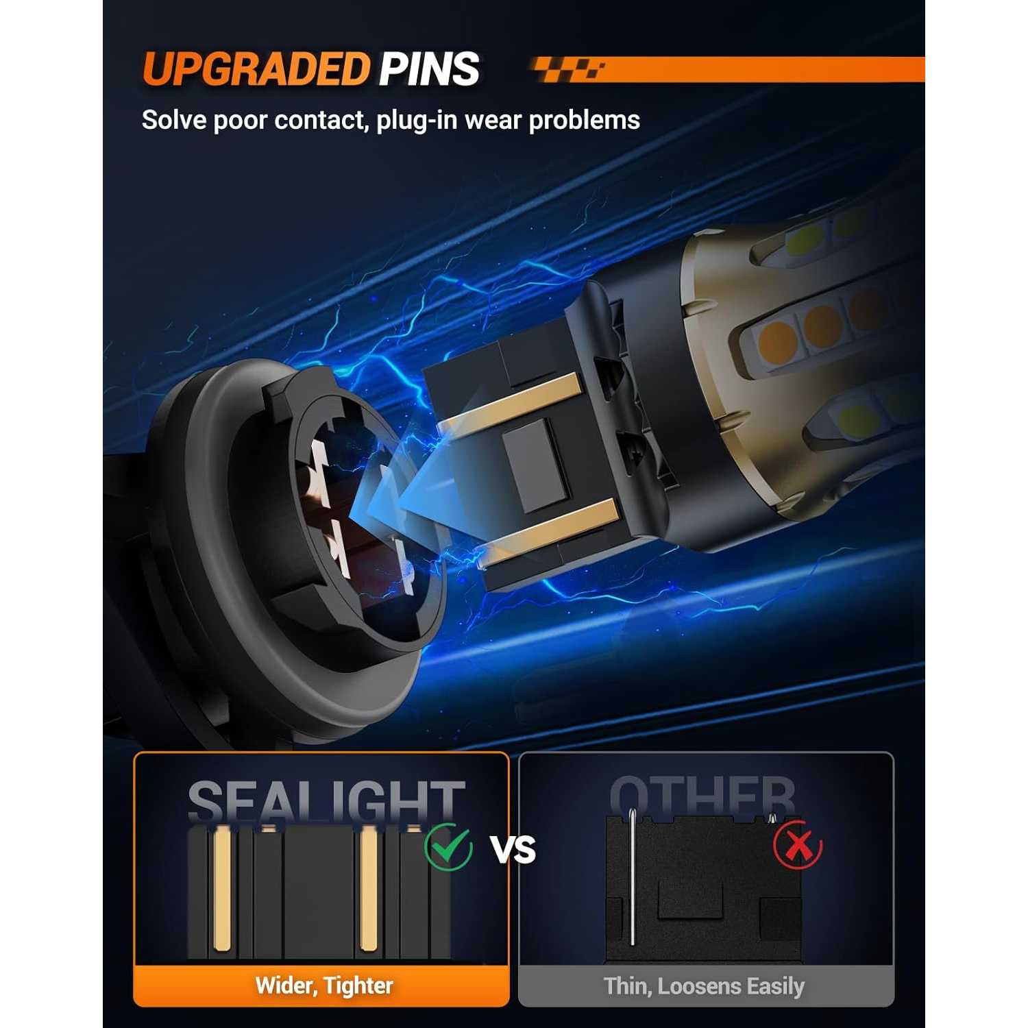 - (5-Minute Plug & Play)SEALIGHT 7443 LED bulbs are engineered for direct OEM socket replacement, ensuring perfect fitment with your vehicle's lighting system. Compatible with SEALIGHT 7443, 7440, 7444NA, 7441, 7444, T20, and W21W standard sockets for front turn signals.