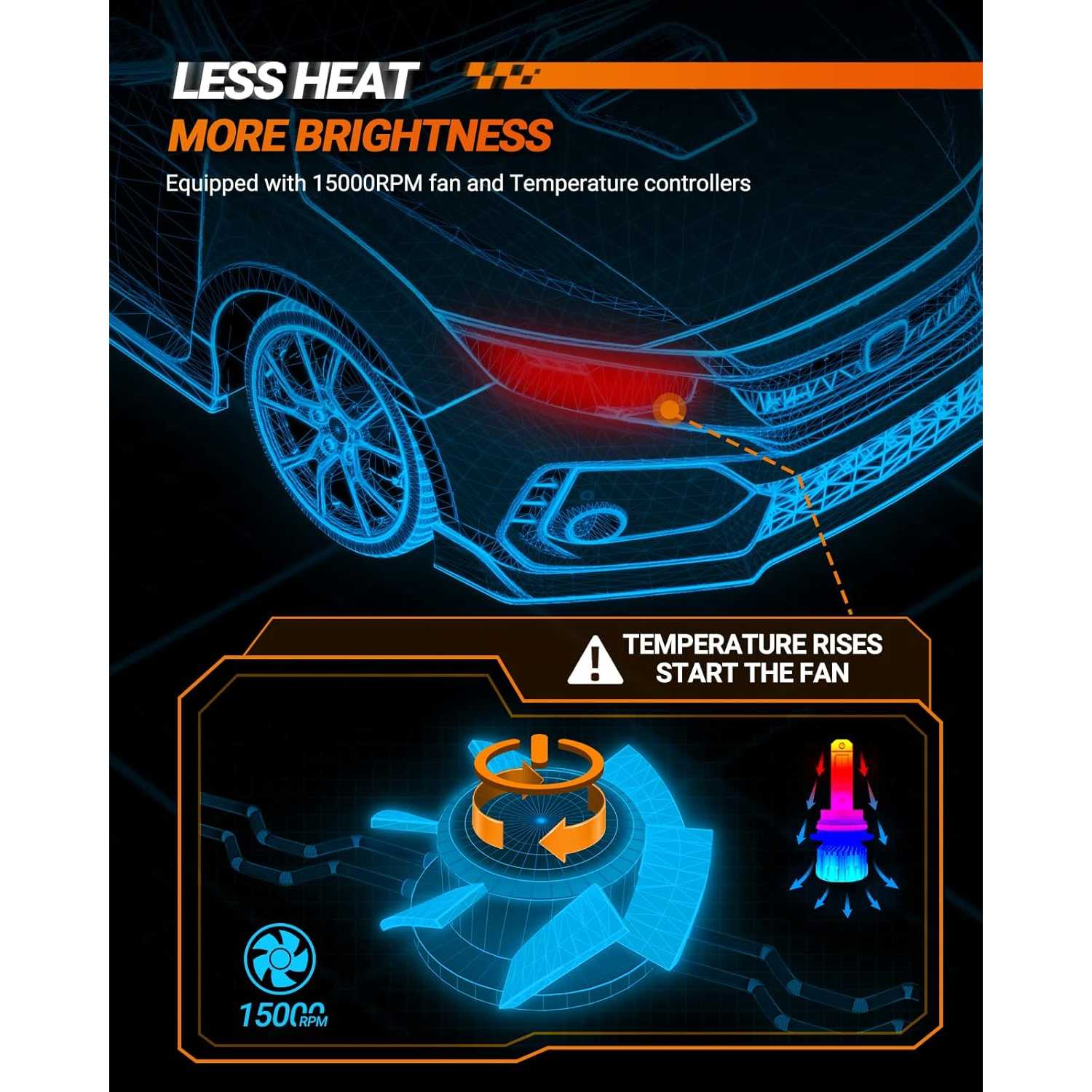 - Efficient Cooling System: This headlamp is made of cold-pressed aluminum material, with 12,000rpm powerful turbo fan which gives lifespan over 30,000 hrs.