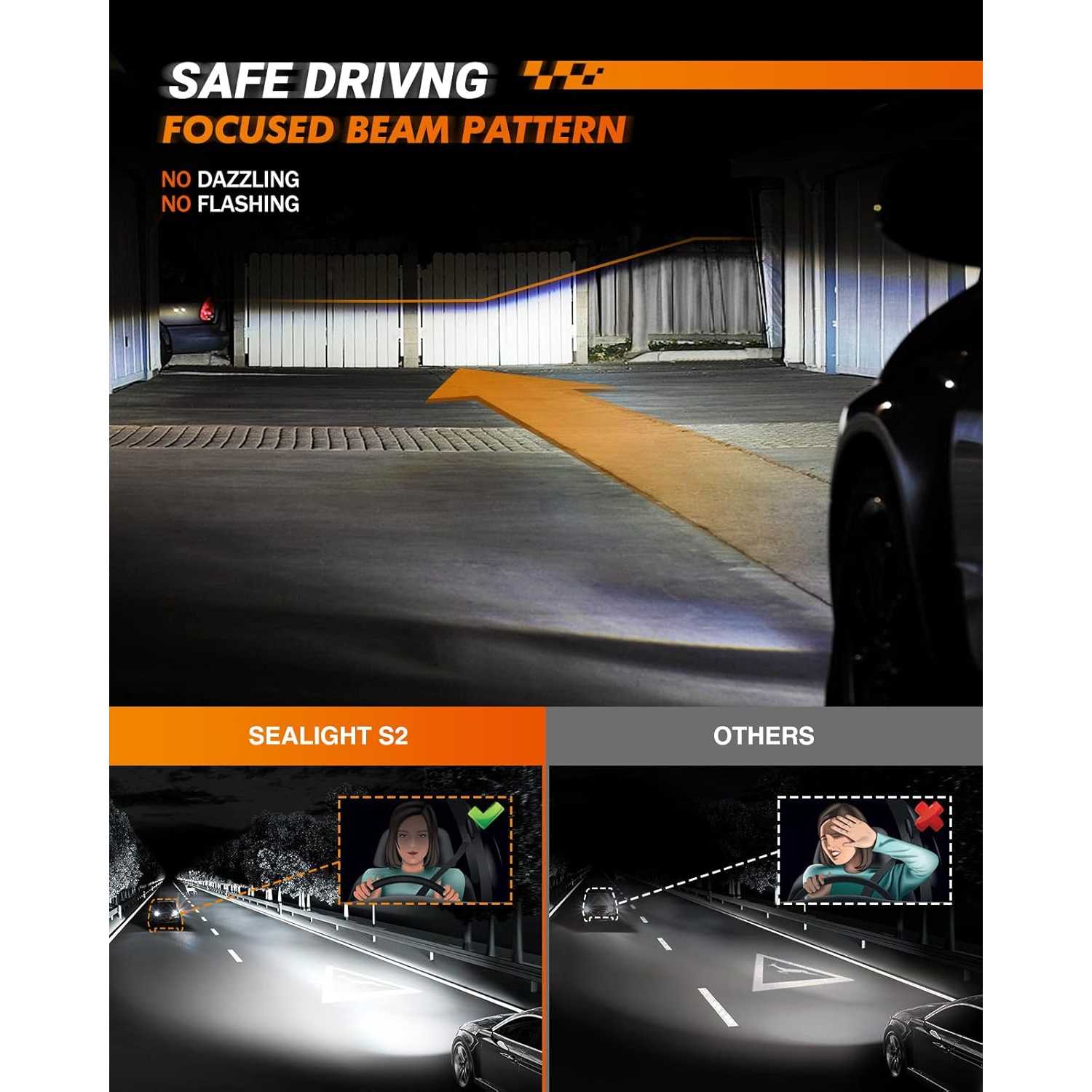 SEALIGHT® S2 9005/HB3 H11/H9/H8 120W 6500K White IP68 LED Headlight Bulbs 2 Pairs