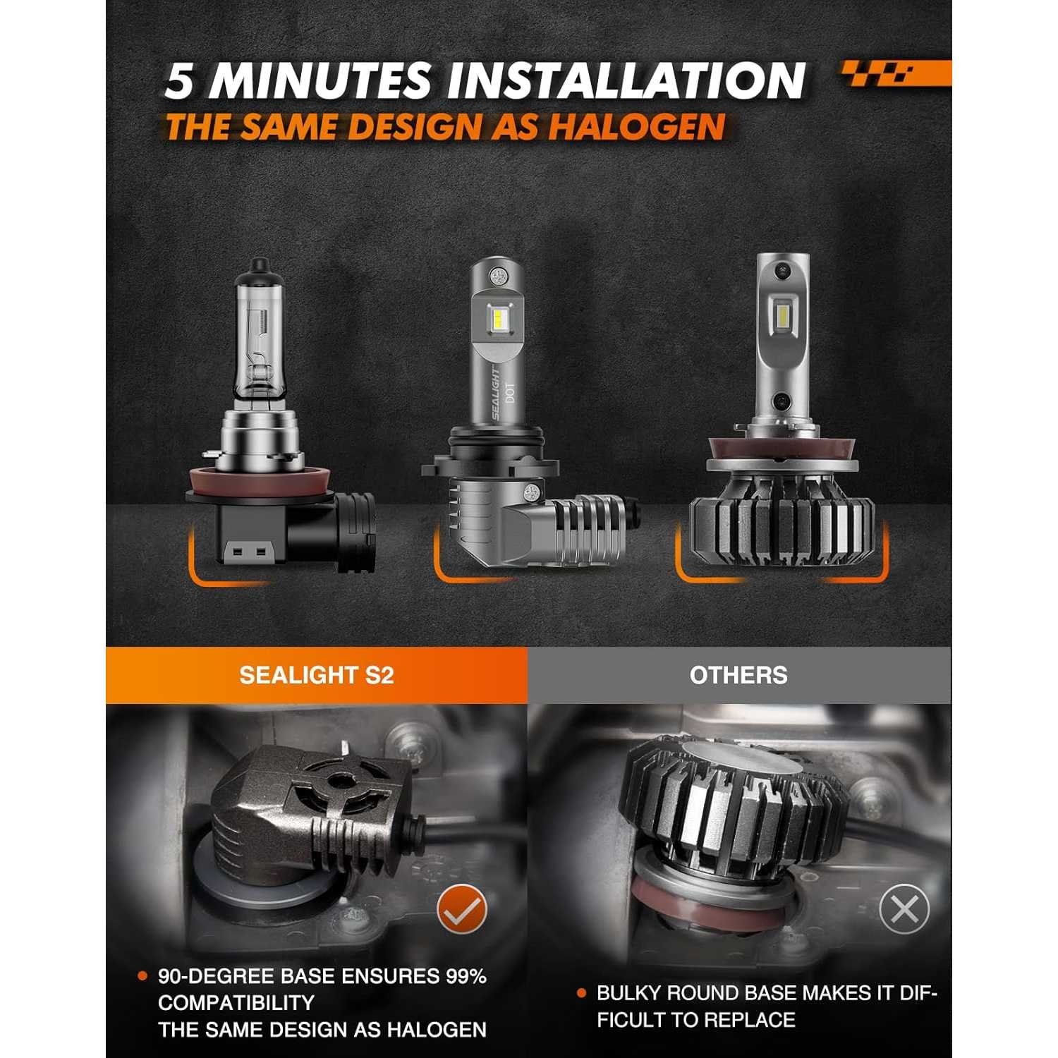 - 1:1 Design: SEALIGHT S7S series 9005+H11 LED headlight bulbs combo comes with smallest design, which is almost identical to halogen bulbs. Fit for over 95% of vehicles.