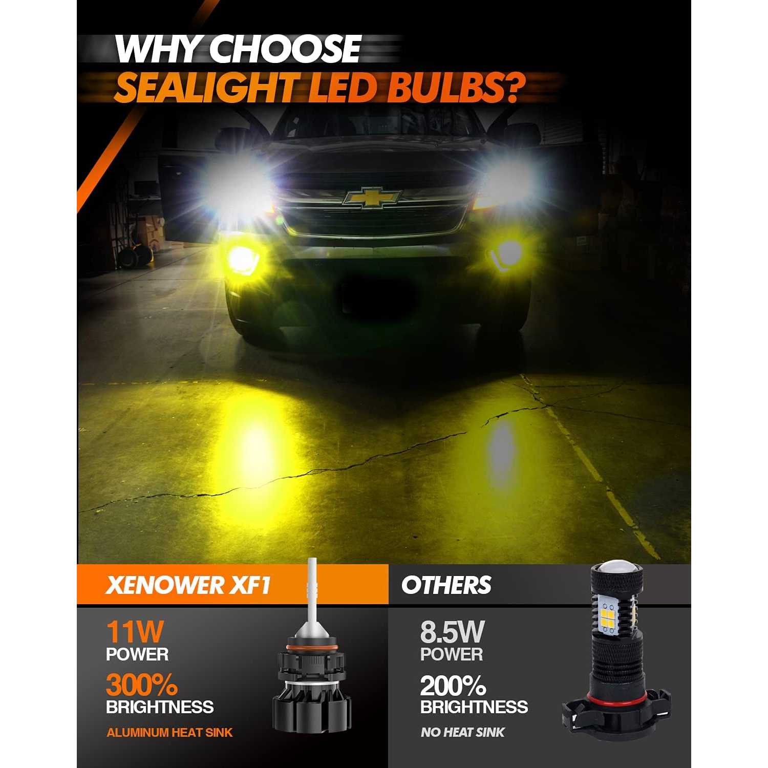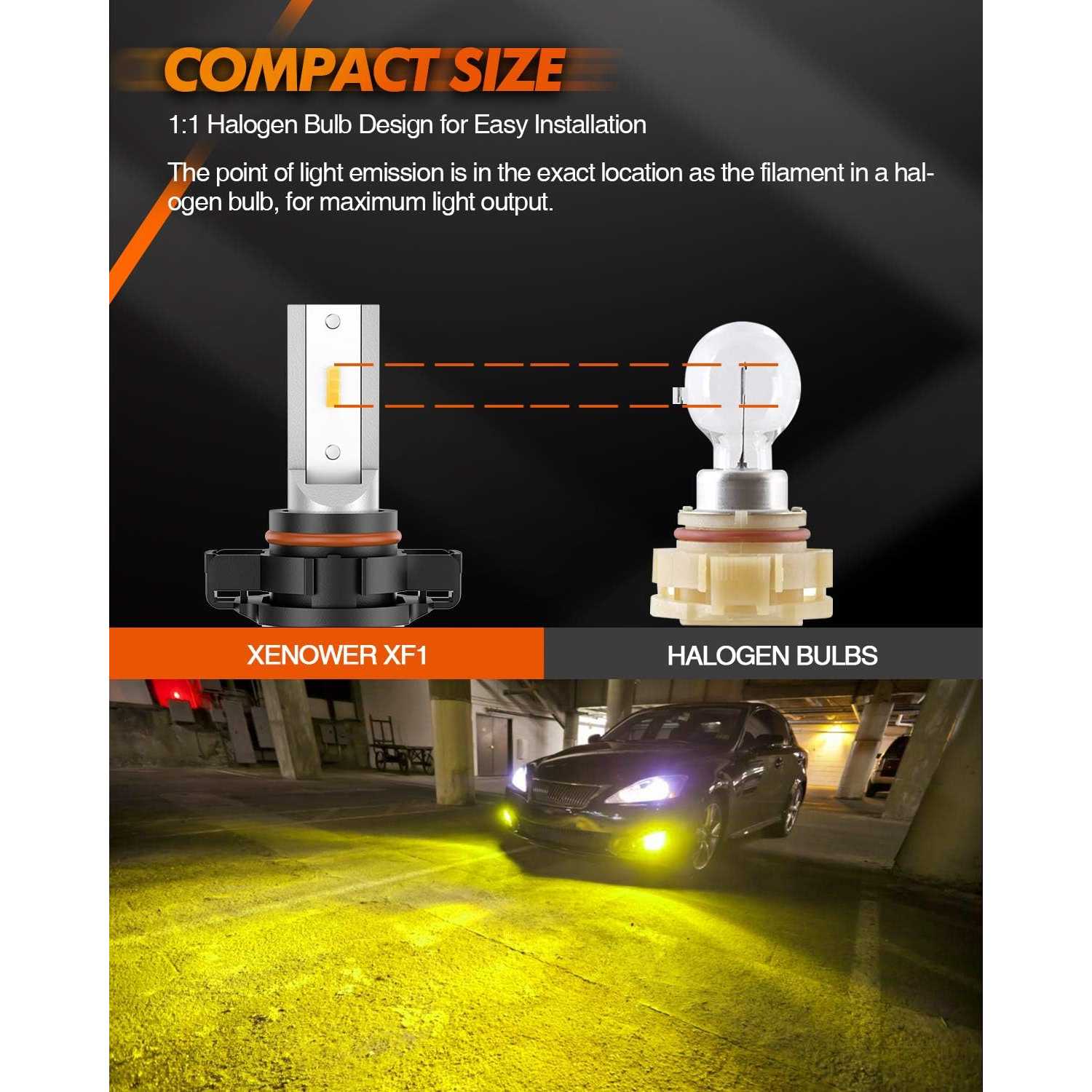 - 13,000LM See Better in Snowy&Rainy Day : 3000K Amber yellow CSP chips, perform strong penetration in snow and rain, XF1 Series 2504 PSX24W fog light bulbs enhance illumination to 600% in dark or low-visibility areas.Helping you enjoy reliable illumination on the road for a long period of time