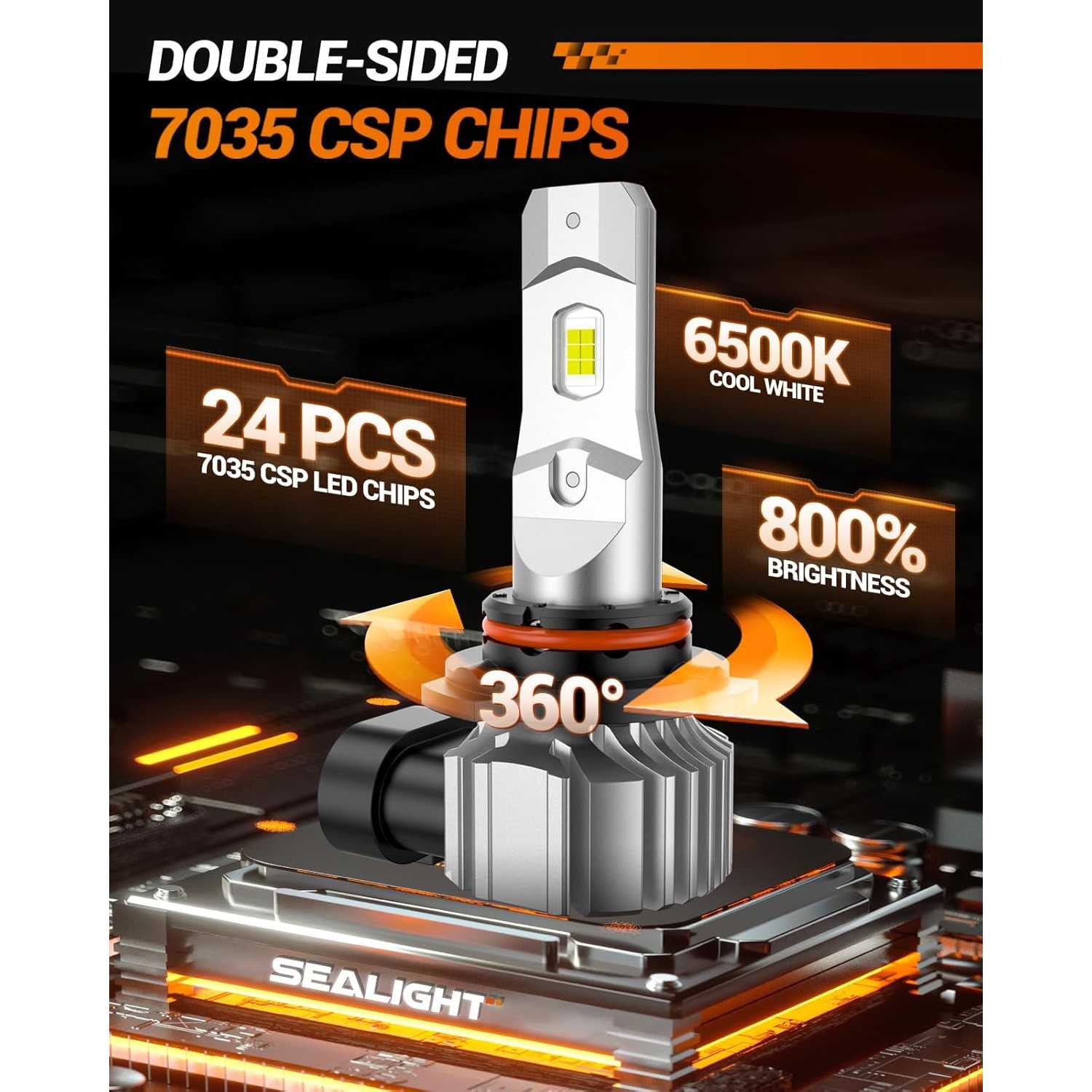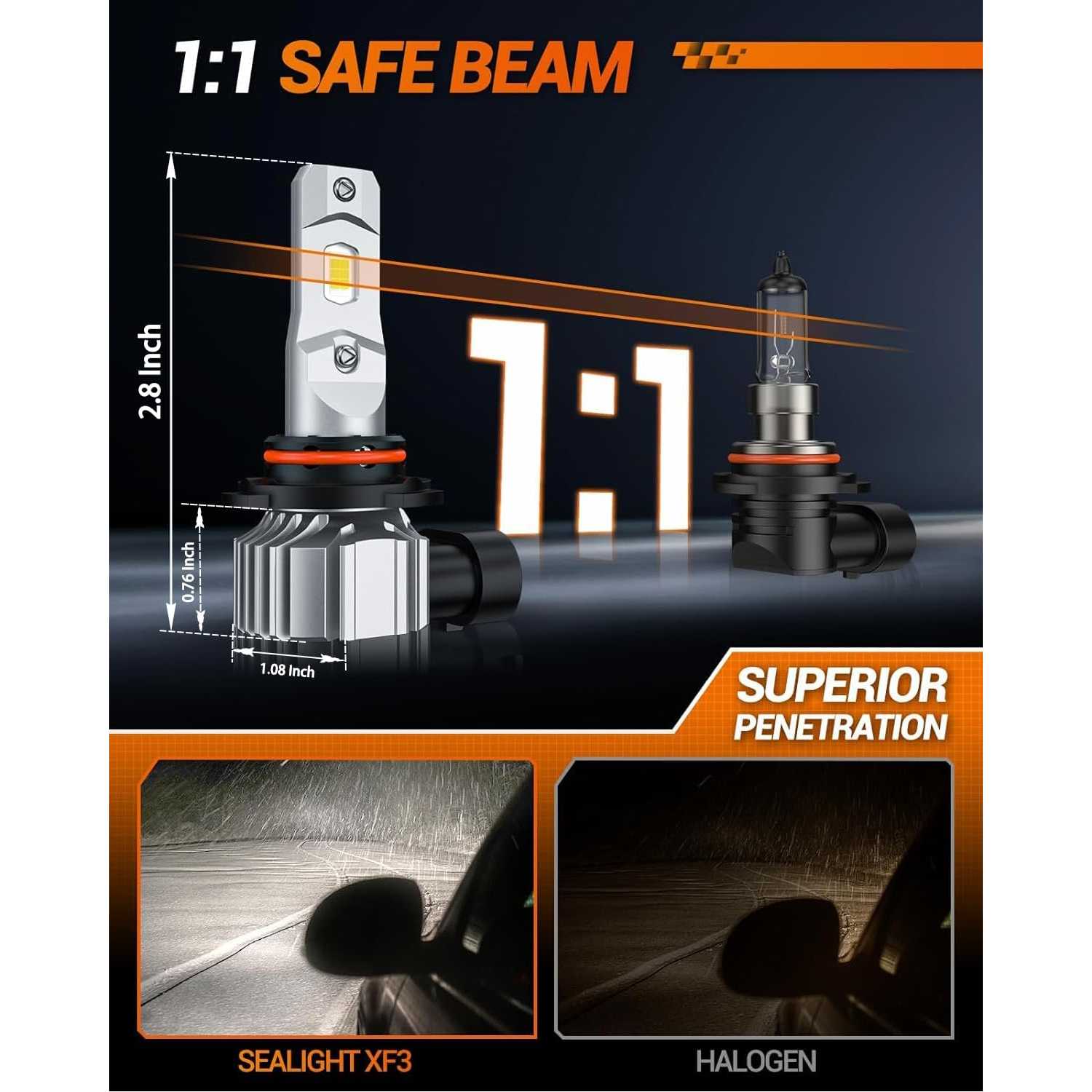 - 18000 High Lumens: The key feature is the powerful Dual-row 7035 CSP chips, Upgrading from 12 LED chips to 24 LED chips, equipped with cutting-edge chip technology. XF3 series 9006/HB4 LED fog light bulbs are renowned for their 800% Brightness and 30w high power, These fog lights LED emit a powerful light that effortlessly cuts through dense fog, heavy rain