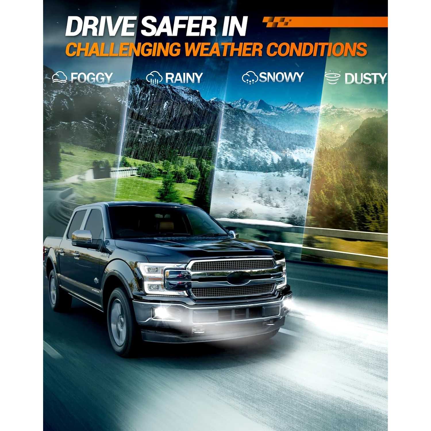 - 800% Brightness, 984 FT Farther Range: Anti-glare coating for reducing the intensity of glare. Strong Penetrating Ability, projects farther up to 984 FT. The wide-angle design covers multiple lanes, and clearly sees pedestrians on both sides of the road. Ensures maximum coverage and eliminates blind spots whether you're navigating winding roads or jamming through traffic