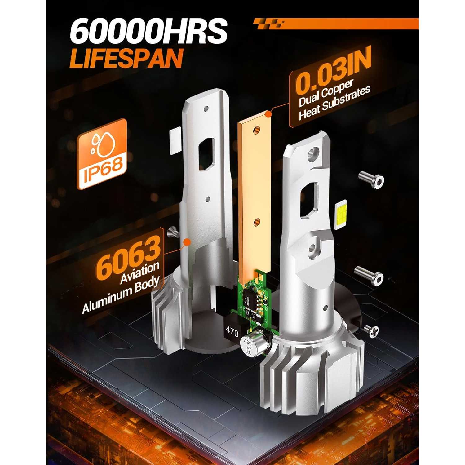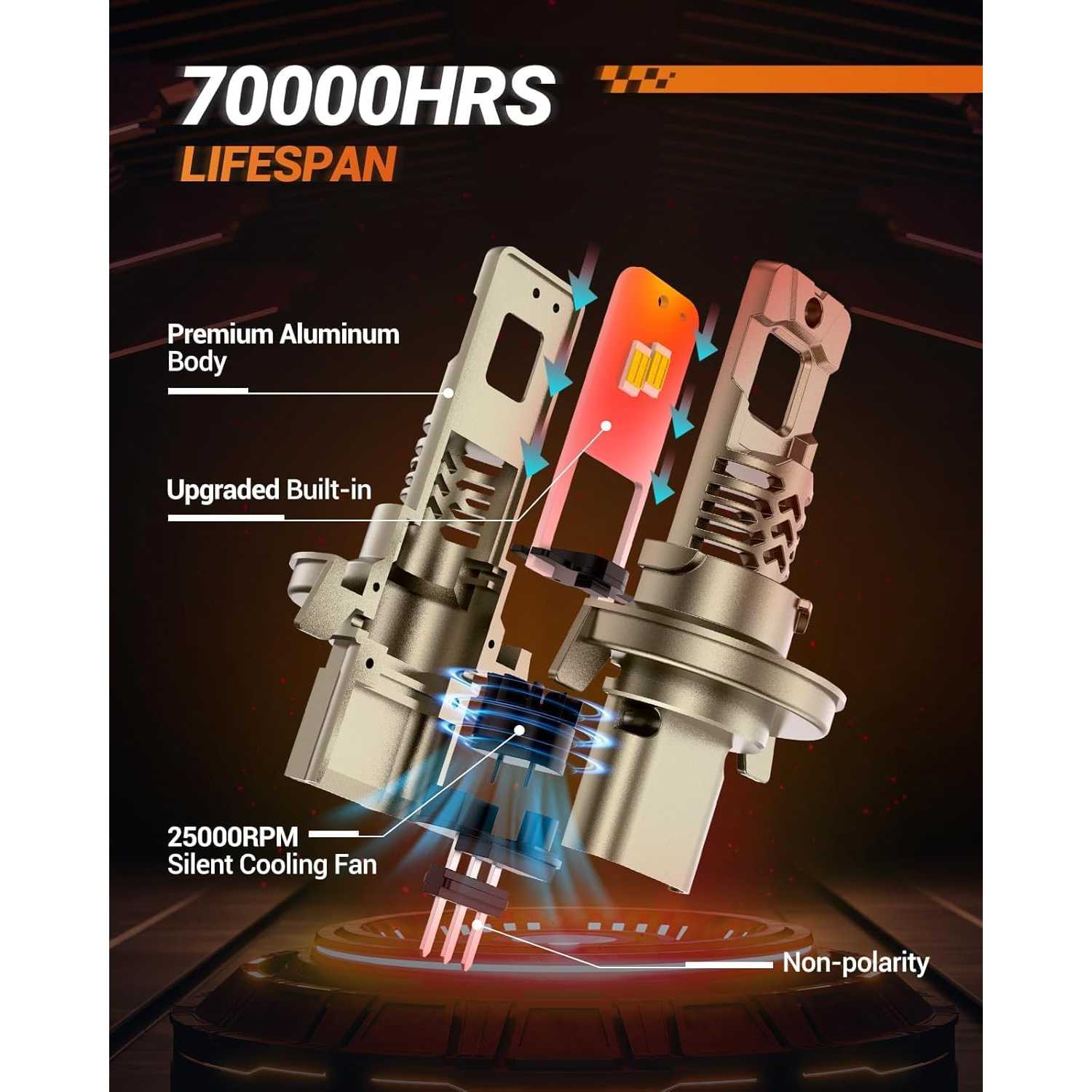 - Long-lasting Performance: With a lifespan of over 70,000 hours, these H13/9008 led bulb feature 25,000 RPM silent fans and double copper tubes for efficient heat dissipation, providing 10+ years of use (based on 10 hours/night)